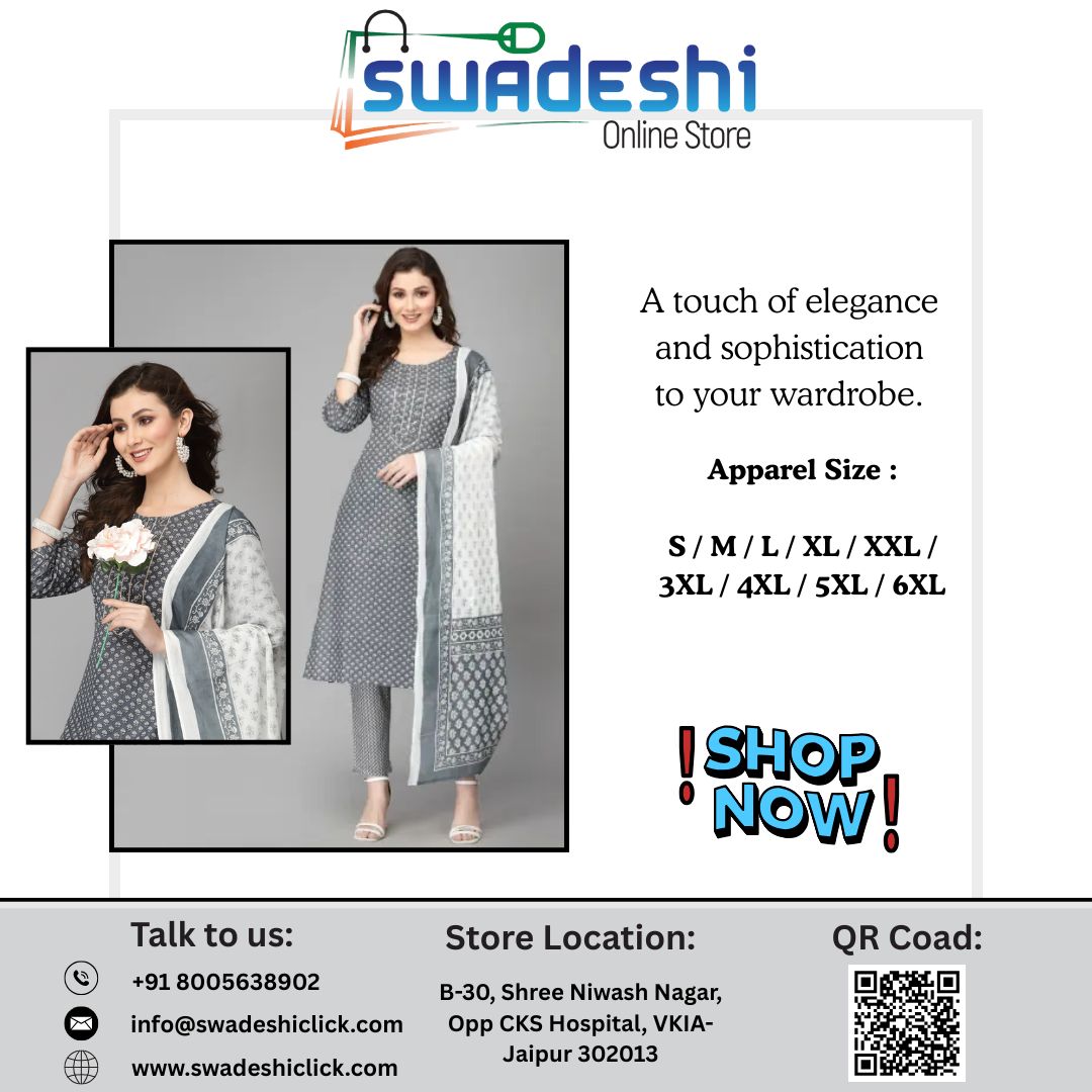 kurta suit set with dupatta adds the finishing touch to your festive outfit. Dupattas in contrasting colors or embellished designs enhance the beauty of your kurta sets and make you look festive-ready in minutes. At Swadeshi Click, you’ll find an extensive range of ethnic kurta set for women and designer options that pair perfectly with matching or contrasting dupattas.